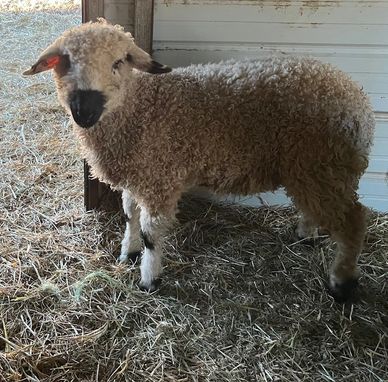 Maren is a character! Lots of funny expresions! She is an F1 (50% Valais/Teeswater) ewe lamb born 2/15/25. She is outgoing and friendly and has beautiful wool. Out of Smudge and sired by Pure Valais Aramis. $1500